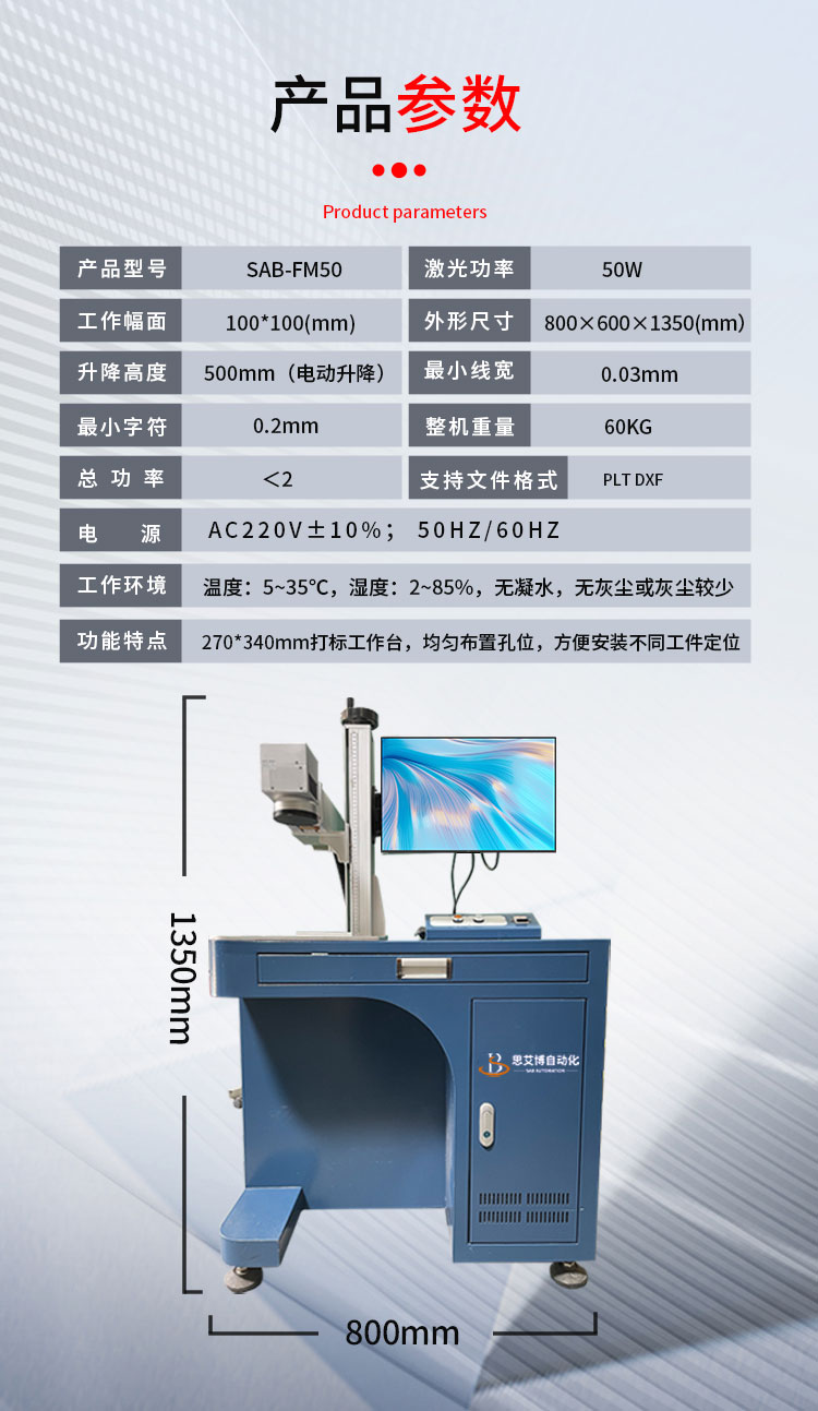 光纤激光标准打标机是属材料零部件(如汽车零件、手机配件、电脑配件)的表面标记雕刻的高级打标设备。能实现中英文、数字、商标、序列号、批号、规格等产品标识;并可用于部分非金属材料如PVC电缆、ABS塑料标牌等的表面标记雕刻。全电脑输入、输出,基于WINDOWS界面,可实现任意图形、二维码、文字、数字混排并一次性完成打标;实现对图形、文字及其他需变更技术,参数进行逐个或增量打标一款用于金。此设备能够通过通信方式进行自动打标。